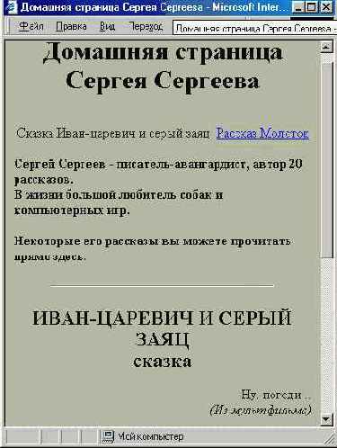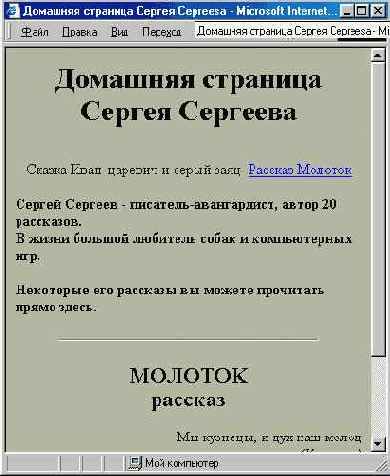 Итак, теперь эта страница приобрела внешний вид, показанный на рис. 7.11. После щелчка на мнимой гиперссылке Рассказ “Молоток” ее вид изменится (см. рис. 7.12).